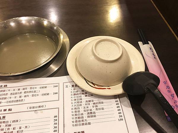 一入座桌上會有事先擺好的餐具及高湯鍋,服務人員會在點餐後幫客人替換掉需要更換的鍋,例如點了麻辣鍋的客人,就會把高湯鍋拿走,換成麻辣湯鍋,可能點一般招牌鍋的客人還是佔多數的,這樣比較不用浪費太多時間在上鍋:D