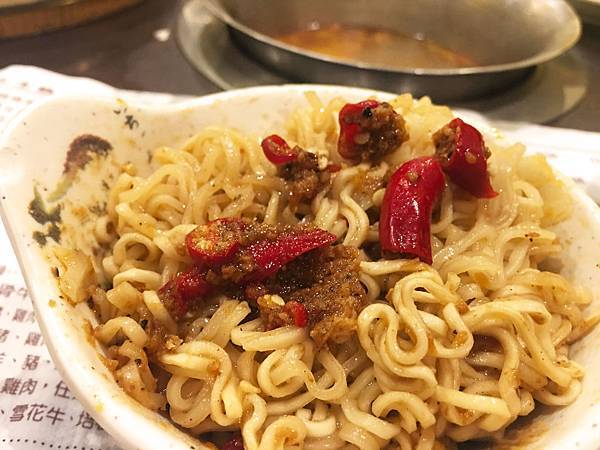 妹子吃火鍋最不能放過的就是泡麵啦XDDDD這是一種魔力,所以每次總是把白飯換成泡麵,在用餐尾聲後,將泡麵丟入鍋內煮個兩三分鐘,撈起來再搭上自己配的醬汁,通常不外乎就是沙茶醬、辣椒、蒜泥之類的,這就是最簡單的美食!