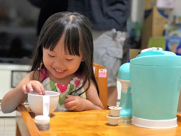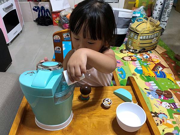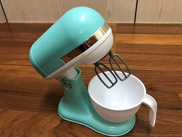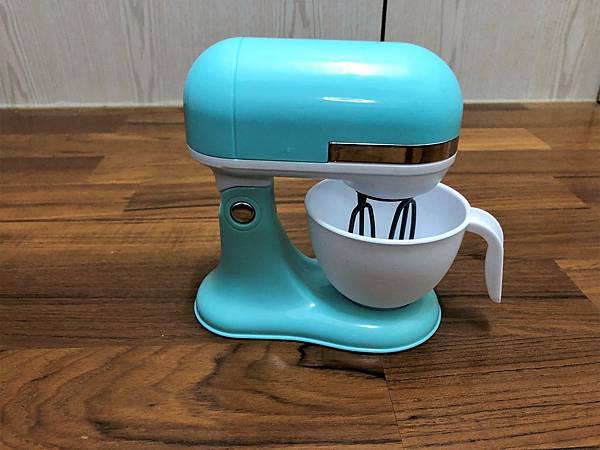 這就像是做蛋糕麵包常見的攪拌機,電池需自行裝入,開啟開關後,攪拌棒會快速旋轉,仿真指數相當高,可以準備一些黏土,捏成小圓球之後放入,攪拌起來更有感覺。
