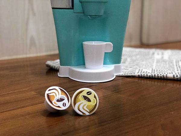 咖啡膠囊是放置於此處的,當然只是仿真,不會真的流出咖啡來喔…