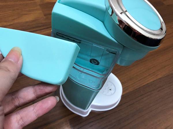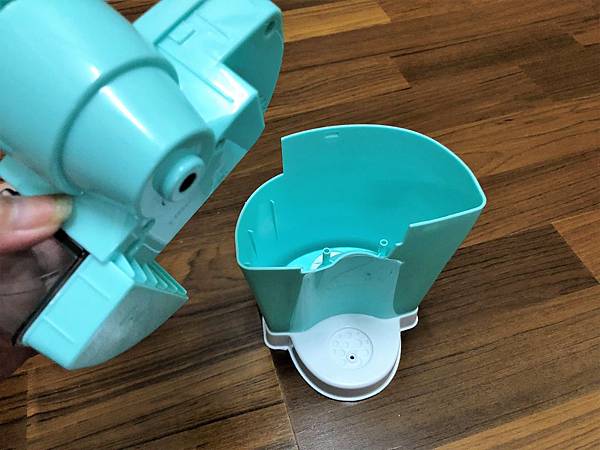 側身透明的水箱,只要將蓋子打開,就能注入清水於此,水箱上有停止線,建議指導小朋友裝水不要超過此線喔,其實超過也不會怎樣啦,就是怕小小孩控制不好,不小心打翻。