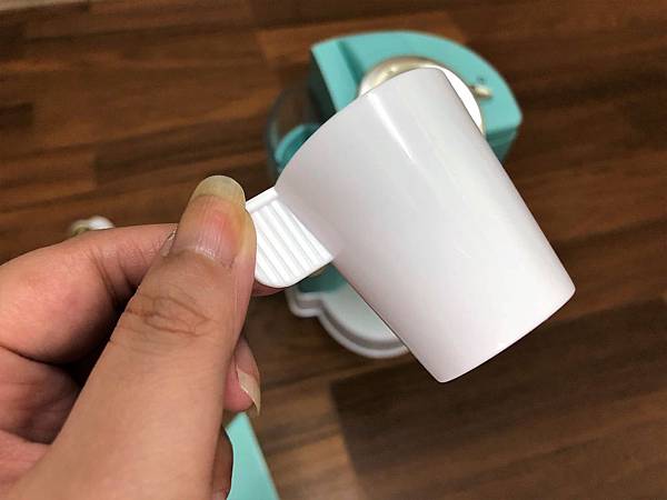 這杯子很輕巧,小杯把做了凸出的線條,增加拿取力不易掉落。