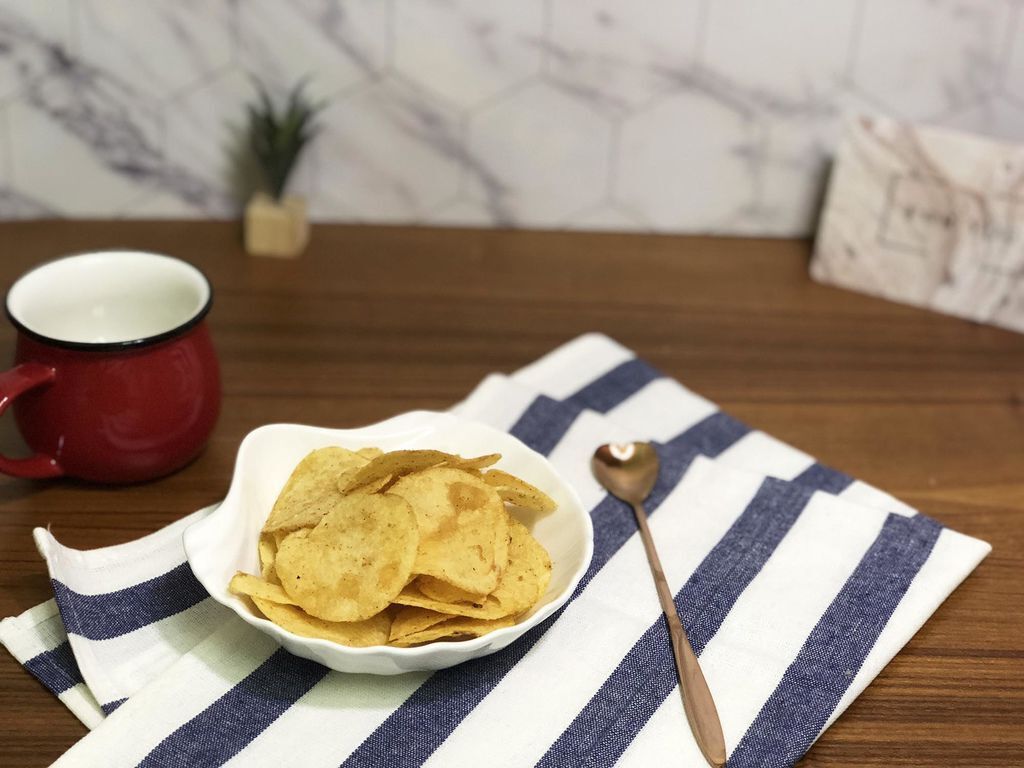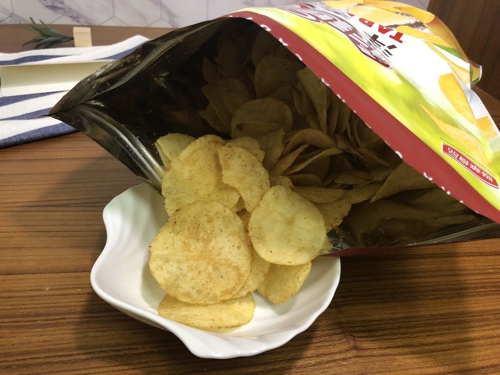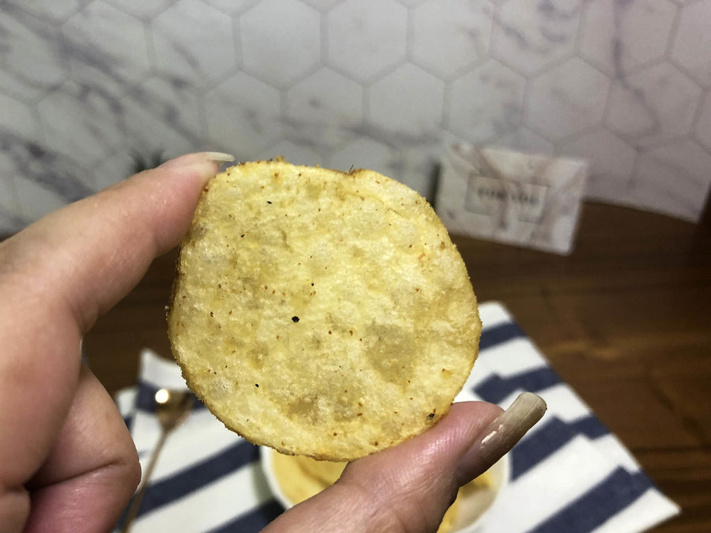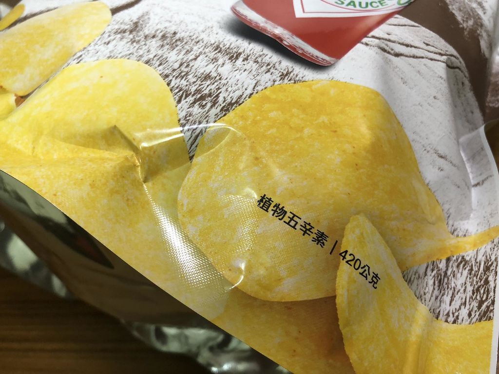 洋芋片上沾有一些粉末,聞起來酸酸香香的,重口味的程度大約在中上,辣度我是覺得中下,這要看個人吃辣的能力了。