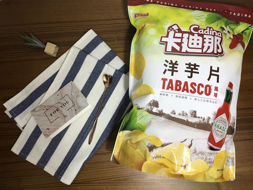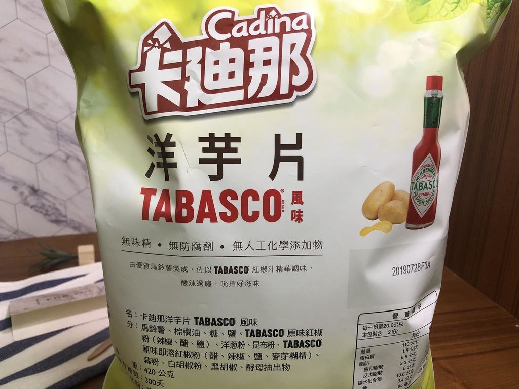 這包聯名口味是植物五辛素,可以接受的素食朋友,也能享用TABASCO特殊風味的卡迪那囉!