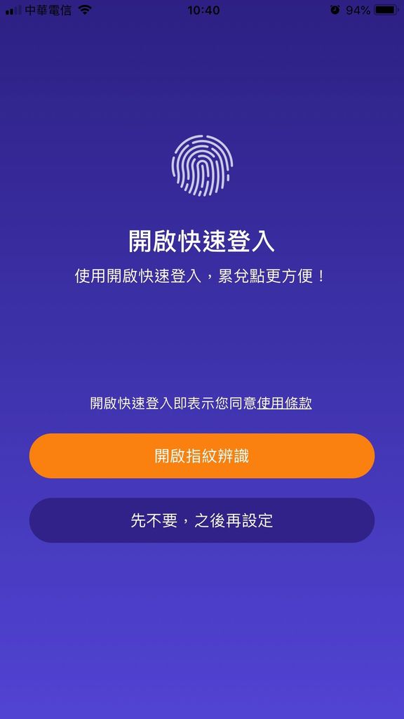 登入的方式除了輸入密碼外,還可以設定快速登入,我開啟指紋辨識超好用,這樣要出示手機時更快速,不會讓店員久等!