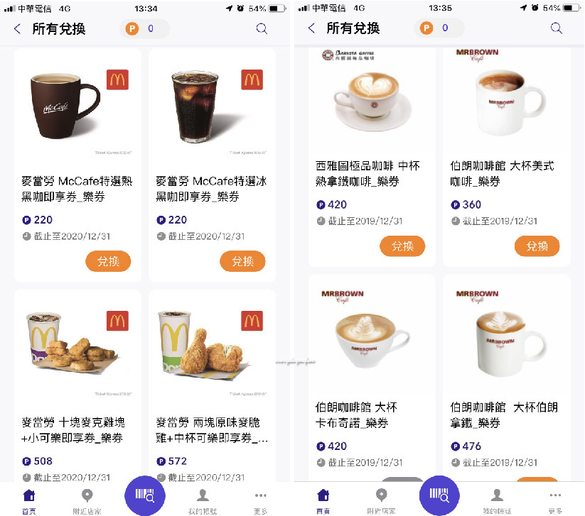 麥當勞、漢堡王、達美樂、爭鮮即享券、品田牧場、石二鍋…等美食餐廳;全家、義美…等零售通路;就連屈臣氏也有喔,大部份兌換點都很多,不會讓你看得到吃不到啦。