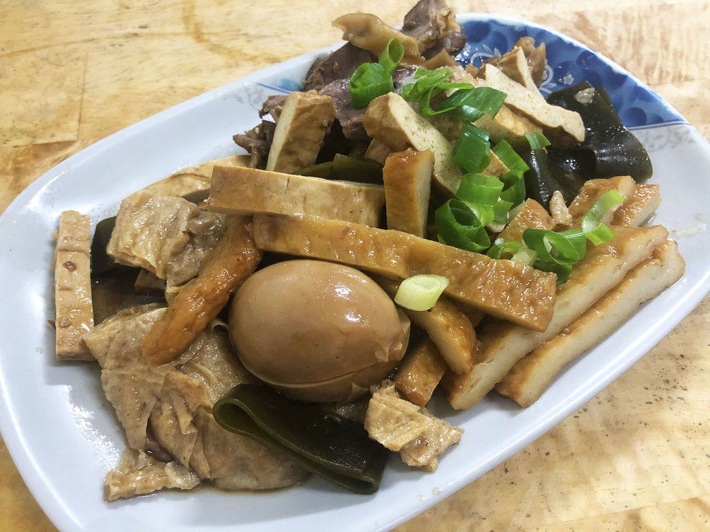 我平常愛吃甜不辣偏好用炸的,因為用滷的很容易過爛,咬起來很傷感,這家的滷菜雖說沒有超級亮點,但都在水準之上,不僅好吃也很入味,那豆皮味道也很夠,當然也要記得加旁邊的辣油。