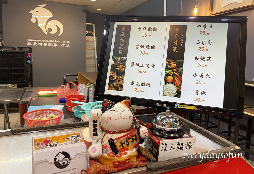 今晚來點不一樣的,白色斗大的招牌,在人來人往的新生路上十分明顯,充滿文青感的風格,是不是很難想像這是間鹽酥雞店呢?