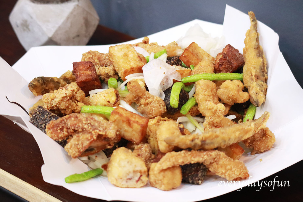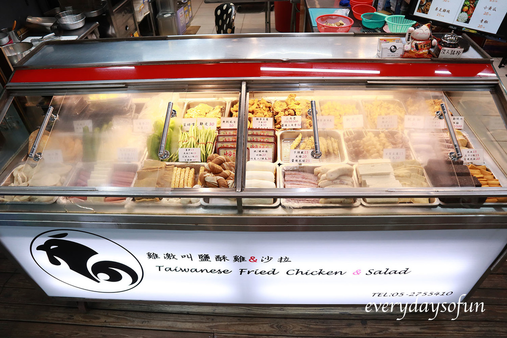 偌大的冰櫃裡,放滿了各式各樣的食材,與一般鹽酥雞的方式一樣,自行夾取,老闆會依序處理烹調。