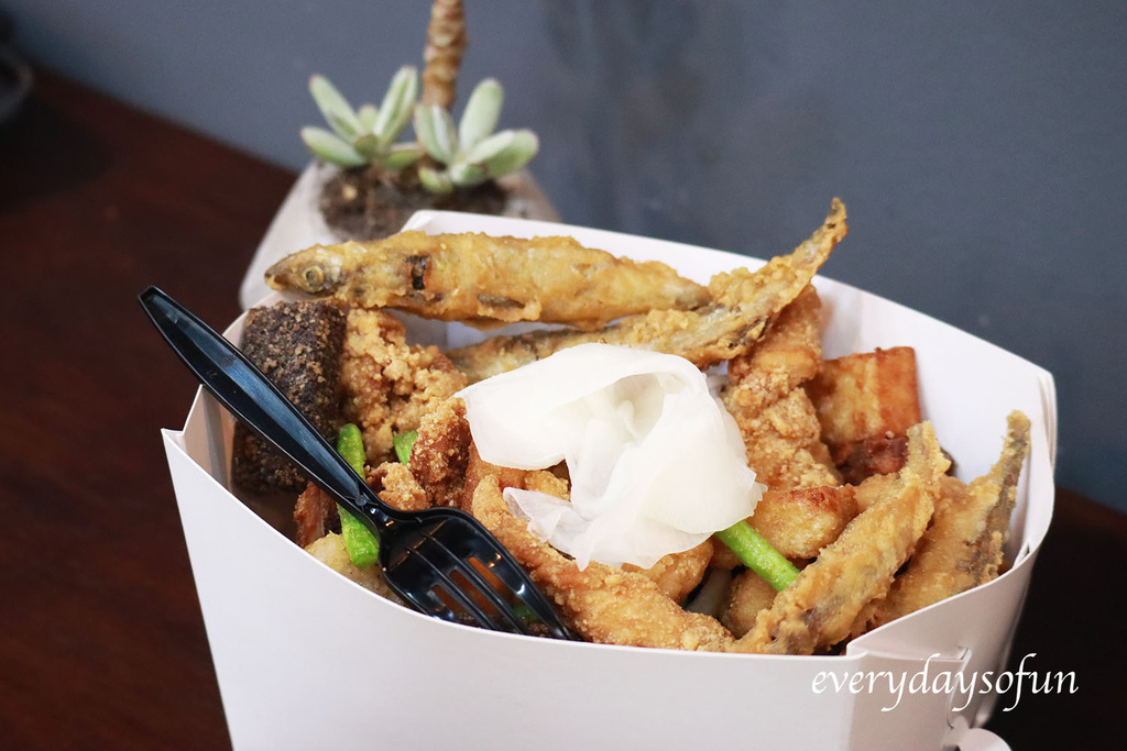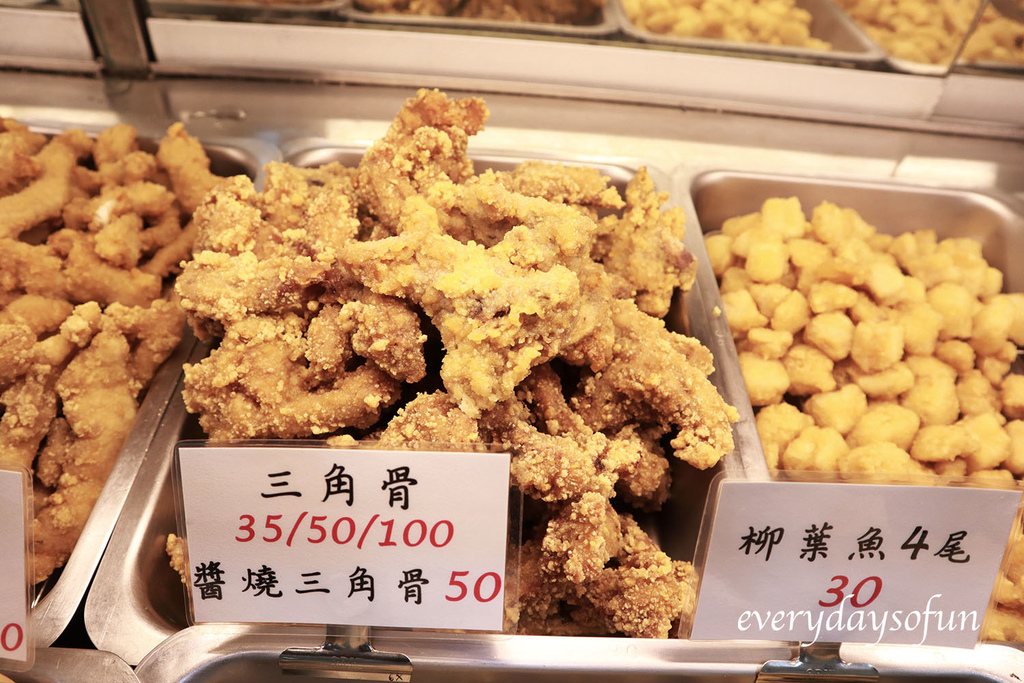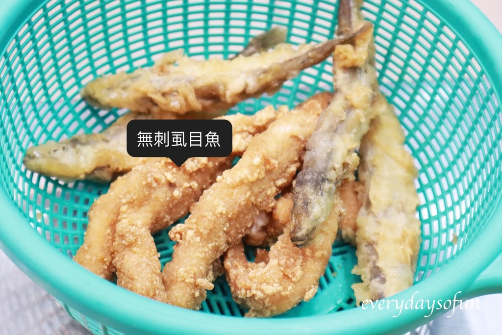 選擇的品項真的挺多的,像是無刺虱目魚、柳葉魚、三角骨、四季豆、米腸、豆包等等,最上面還附贈蘿蔔片及洋蔥,可以配著吃更解膩。
