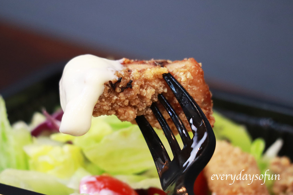 炸得金黃酥脆的雞排,淋上特調照燒醬,鹹甜口味簡直停不下來,雞排可以選擇切或不切,單獨袋裝,醬汁就不會沾到其他食材了,如果可以餐餐吃這個該有多好XD