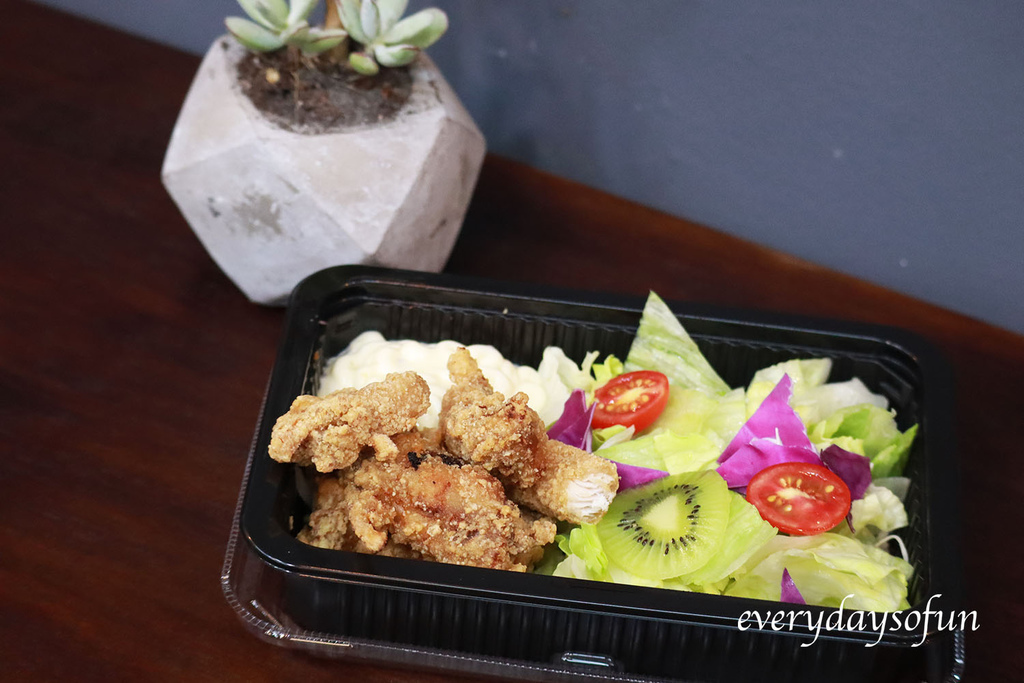 這沙拉可不只有生菜,裡面還有小蕃茄及奇異果,老闆會視每天食材的狀況調配,都是天天新鮮製作,所以炸雞沙拉每天限量,建議可以先預訂,或是致電詢問。