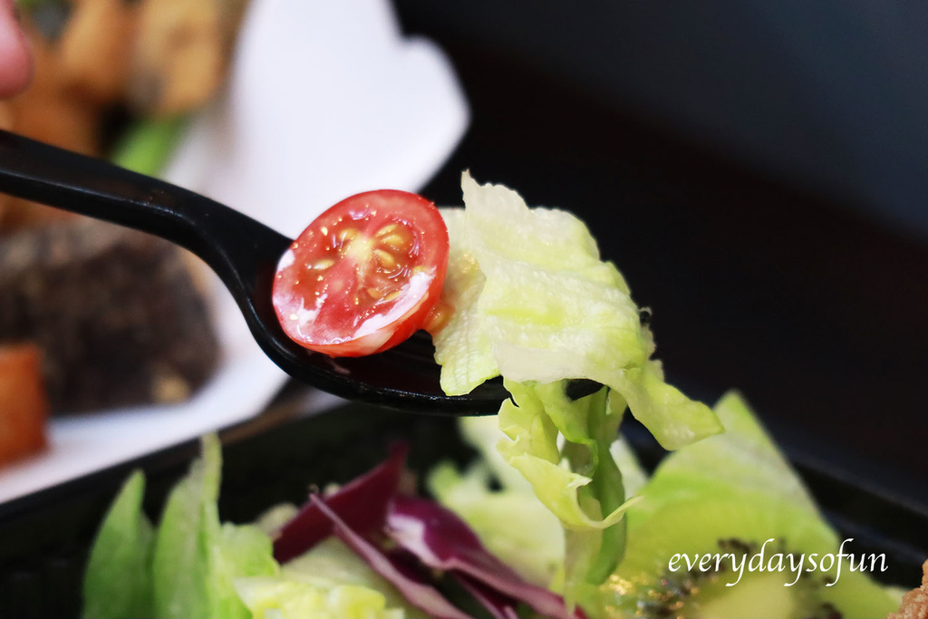 搭配沙拉共有三種主食可選,分別為三角骨、雞腿肉、虱目魚。
