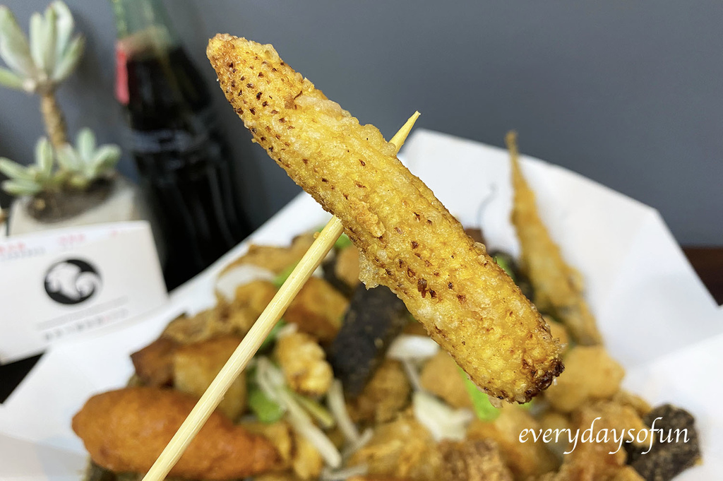 芋頭條及蘿蔔糕也好吃,尤其是芋頭條咬下還保留著非常香濃的芋頭味,這裡的玉米筍也是讓我相當驚豔的品項之一,吃起來沒有生生的味道,反倒是吃得出香甜~
