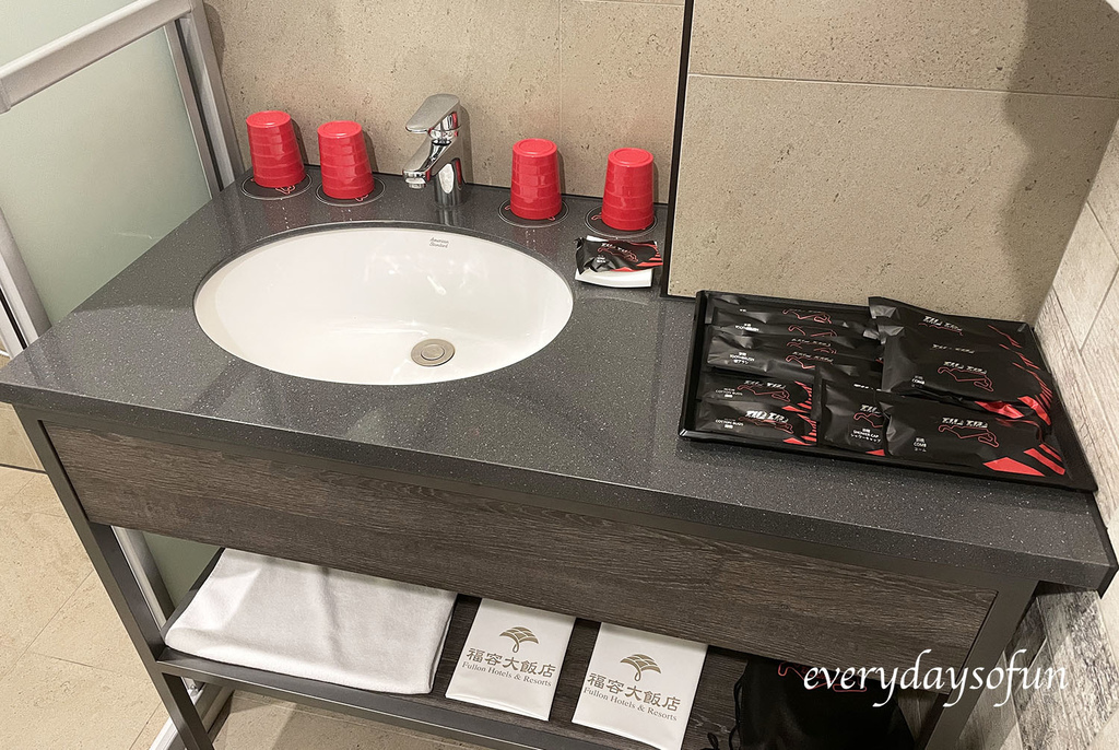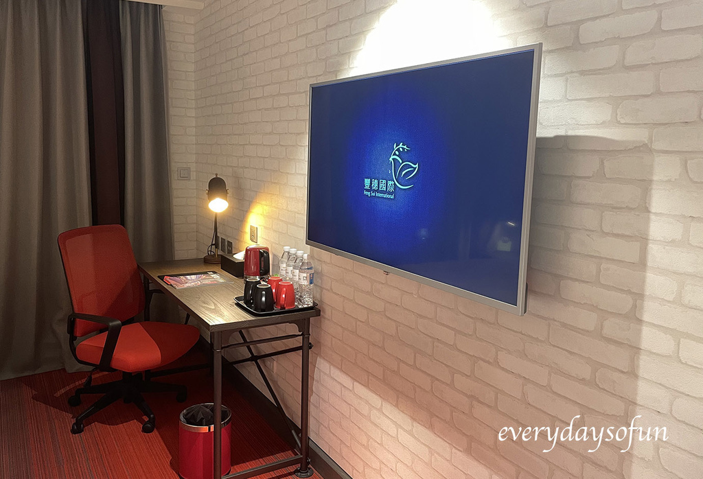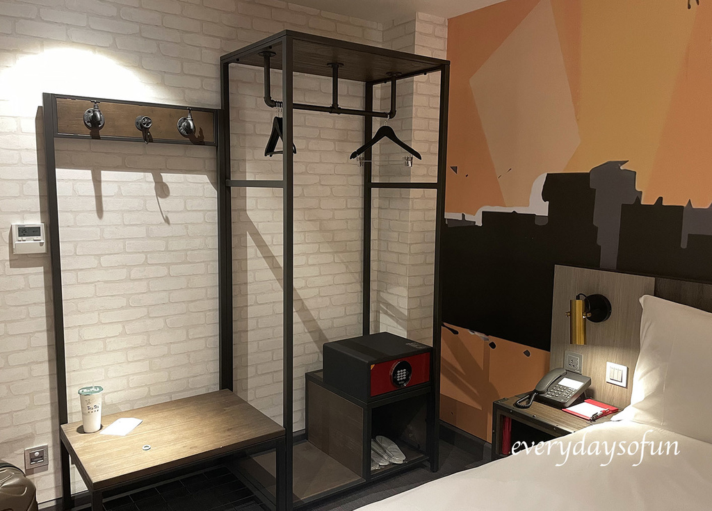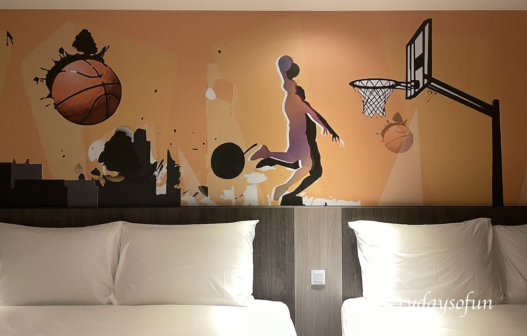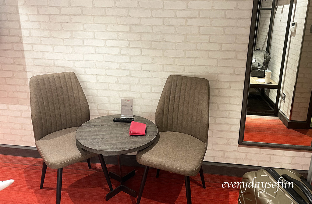 這個系列的房型只有2人及4人的選擇,畢竟不是完全走親子路線的飯店,所以不會有什麼3人房或6人房,我們住的是2大床(180cm*200cm)的房型,8.5坪的房間雖不是超大,但應有盡有,除了沒有冰箱這一點,其他都還算挺滿意的,畢竟這房價也不是非常便宜,居然會沒有冰箱,我們覺得奇妙,不過事先就爬過文知曉這個缺點了,這次住宿也是為了臨近比賽場地,所以倒也就沒放在心上。