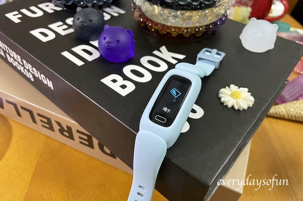 Zia從小到大都很不愛喝水,每次都要我們提醒才會喝水,戴上手環後,只要通過設定時間,手環就會準時震動,提醒小主人該喝水了,爹娘的地位還遠比不上手環……
