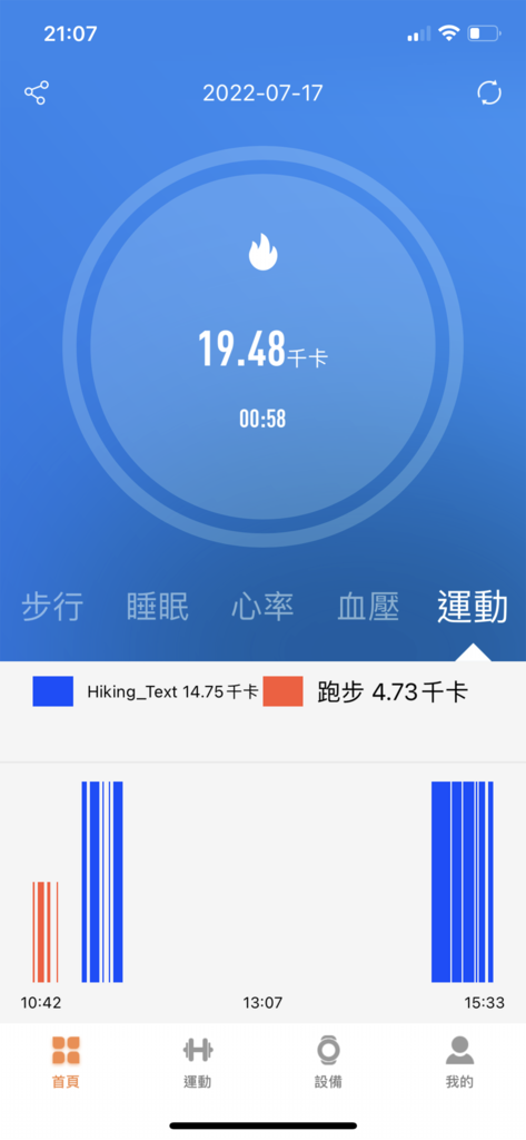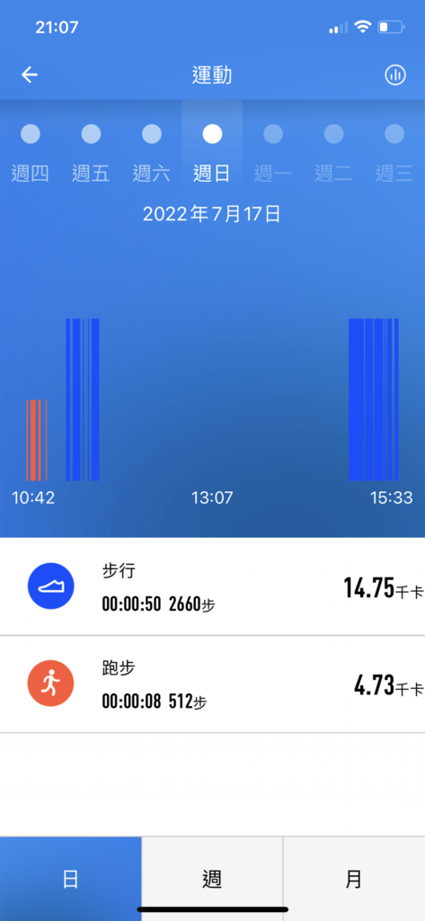 我女兒若是一整天進行活動及高強度運動,就能從APP中看到重度疲勞,這四個大字就提醒我趕緊讓孩子休息啦!