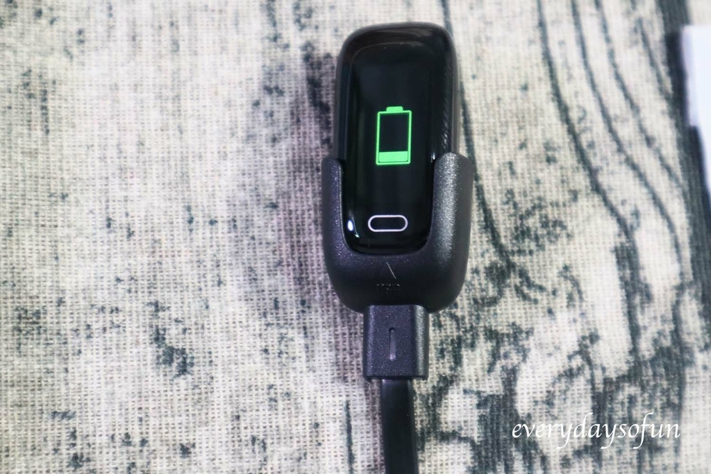 M81的充電時間大約為2小時,續航力很不錯,正常使用下約可維持10-15天,Zia剛開始使用興趣濃厚,時不時就與手環互動,我一開始還很擔心耗電強,目前已連續使用7天仍不需要充電。