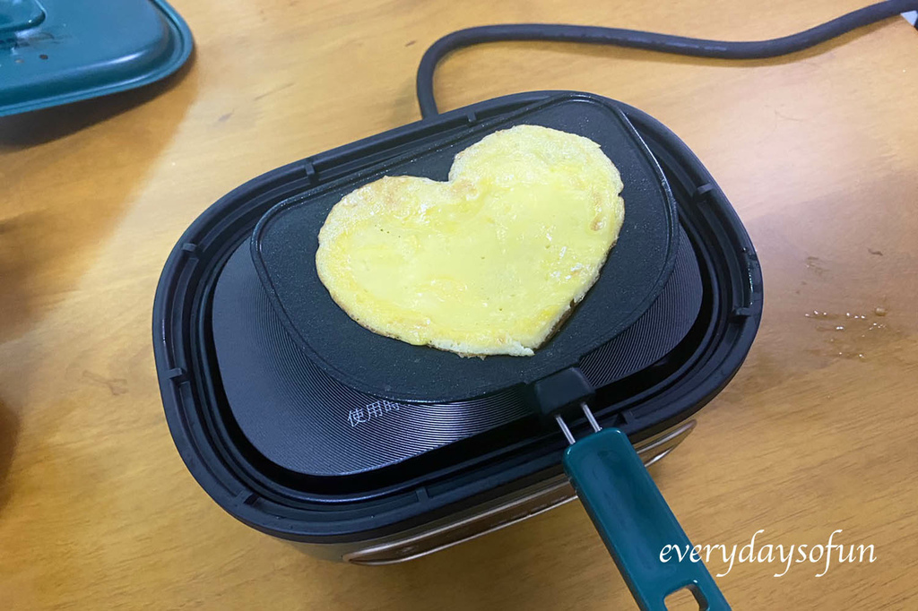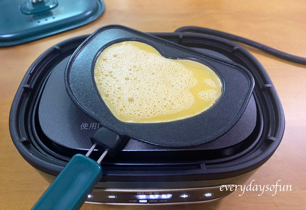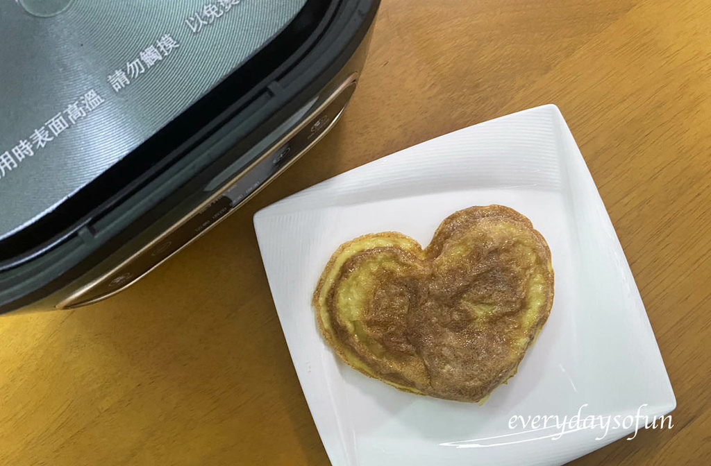 無論是烘蛋還是做鬆餅,因為食材加熱後會膨脹,所以倒入時千萬不要貪心,最好不要倒超過8分滿,若希望加快速度,可以蓋上鍋蓋輔助,也可以觀察調整火力。