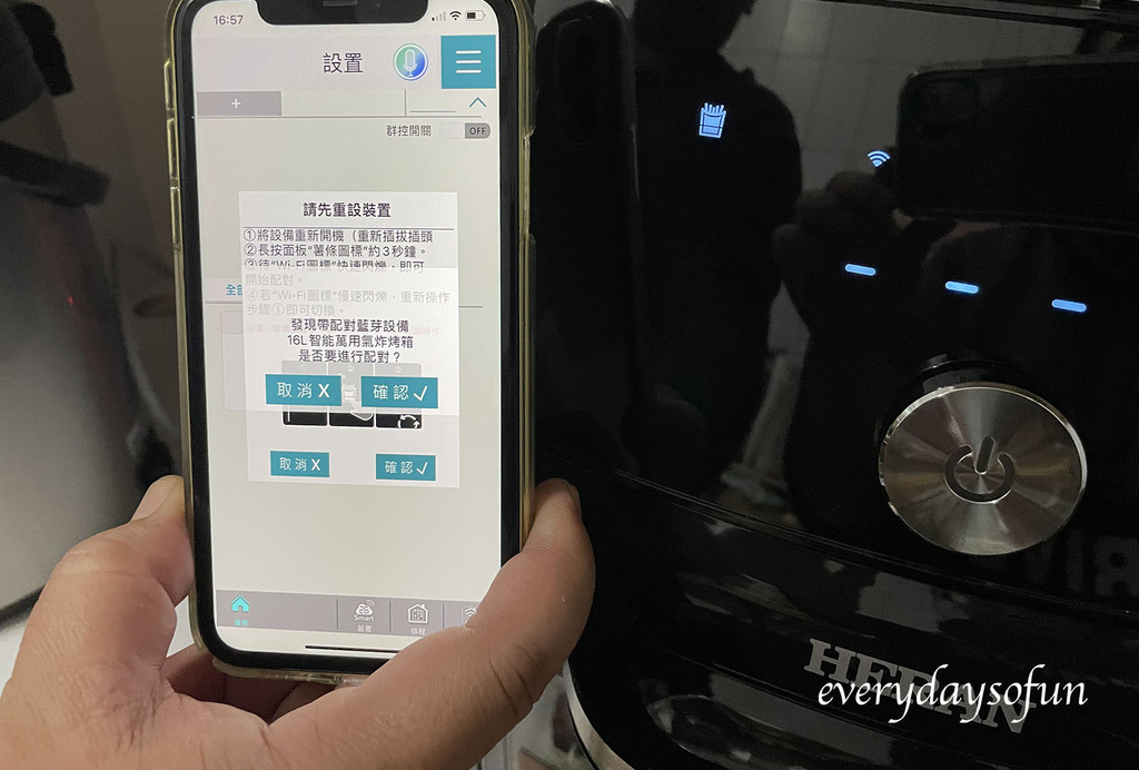 只要擁有一部可連網的智慧型手機,從說明書上下載APP後,就能閱覽APP內的食譜,並且操控調整烹調溫度或時間,但因安全考量避免誤觸,使用APP調整後,仍需手動在機器上啟動,在便利性之餘,也考慮到居家生活的安全。