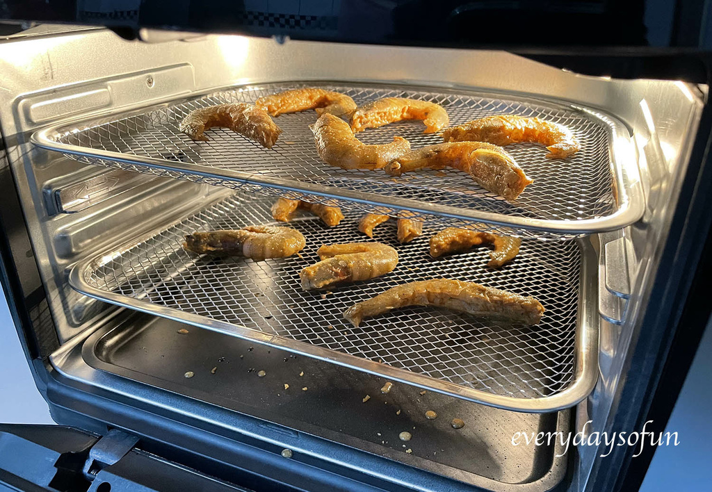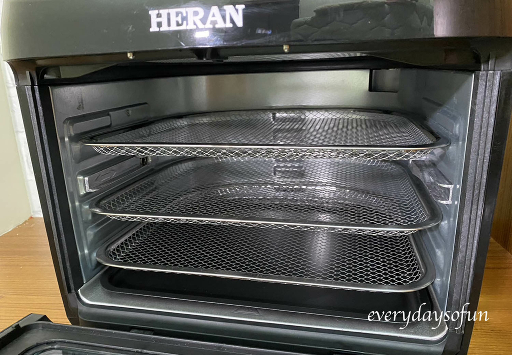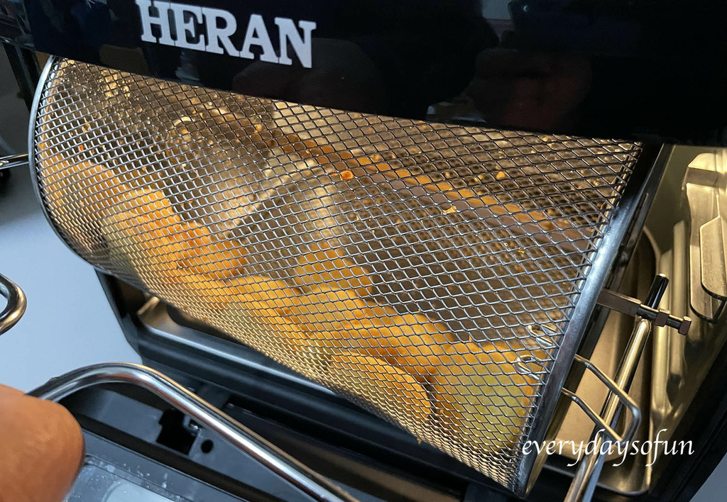 烤網及轉籠都是不鏽鋼,清洗上也不難,用柔軟海綿搭配家中的洗碗精即可清潔完成,接油盤一體成型,沒有多餘的邊邊角角卡髒污,現在就算天天使用氣炸烤箱,清潔對我來說也很簡單囉。