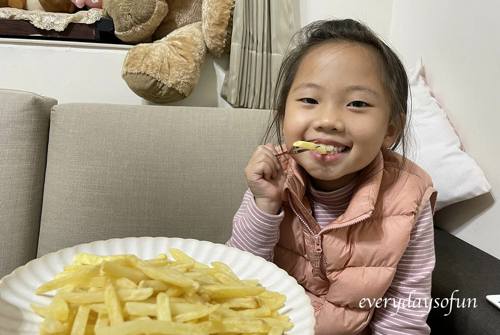 冷凍薯條直接放入轉籠內,轉籠的容量很大,我們一盤的薯條還佔用不到轉籠的三分之一,要是家裡有親友到訪,更不用擔心份量,一次可以料理很多。