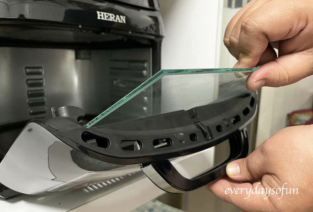 以前使用氣炸鍋,每次都覺得清理麻煩,現在的氣炸烤箱都是很貼心的設計,金屬機身內膽,安全易擦拭,就連玻璃門也是雙層可拆式,只要將兩個小螺絲轉開,玻璃就可以取出清洗,裝回時也別忘了鎖上螺絲才安全。