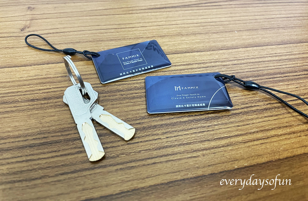 收到產品時整個很有質感耶,裡面包括了前後面板、兩把鑰匙、兩片電子卡、智能防卡鎖體、門扣片、說明書、保固卡、測量紙卡及一些小零件,這些東西都需好好保留,等到府安裝時交給師傅進行施作,屆時也會提供設定教學說明。