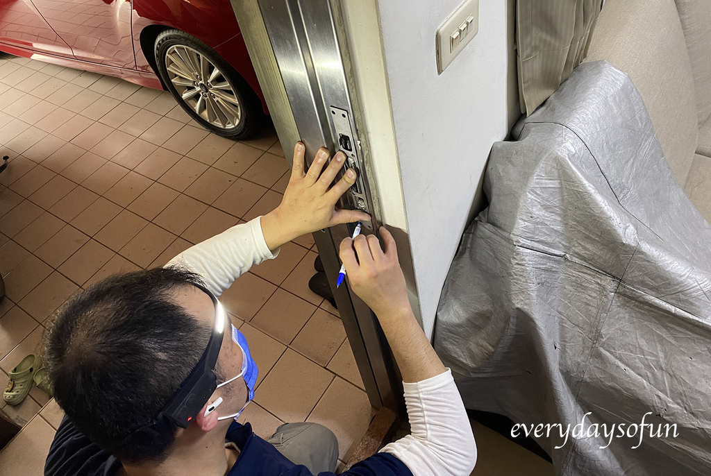 師傅將原有的門把先拆下,仔細地測量好各個對應的尺寸,才將電子鎖安裝上去,施作完成後,很細心的針對首次使用來做教學,基本操作很簡單,在下面設定的區塊會介紹給大家。
