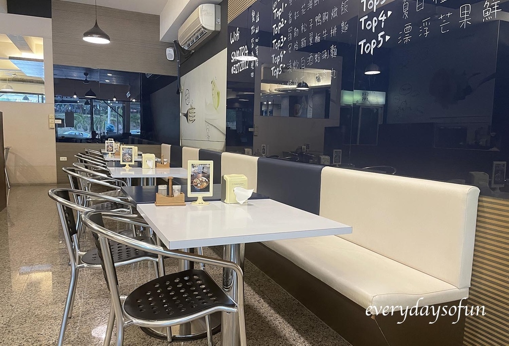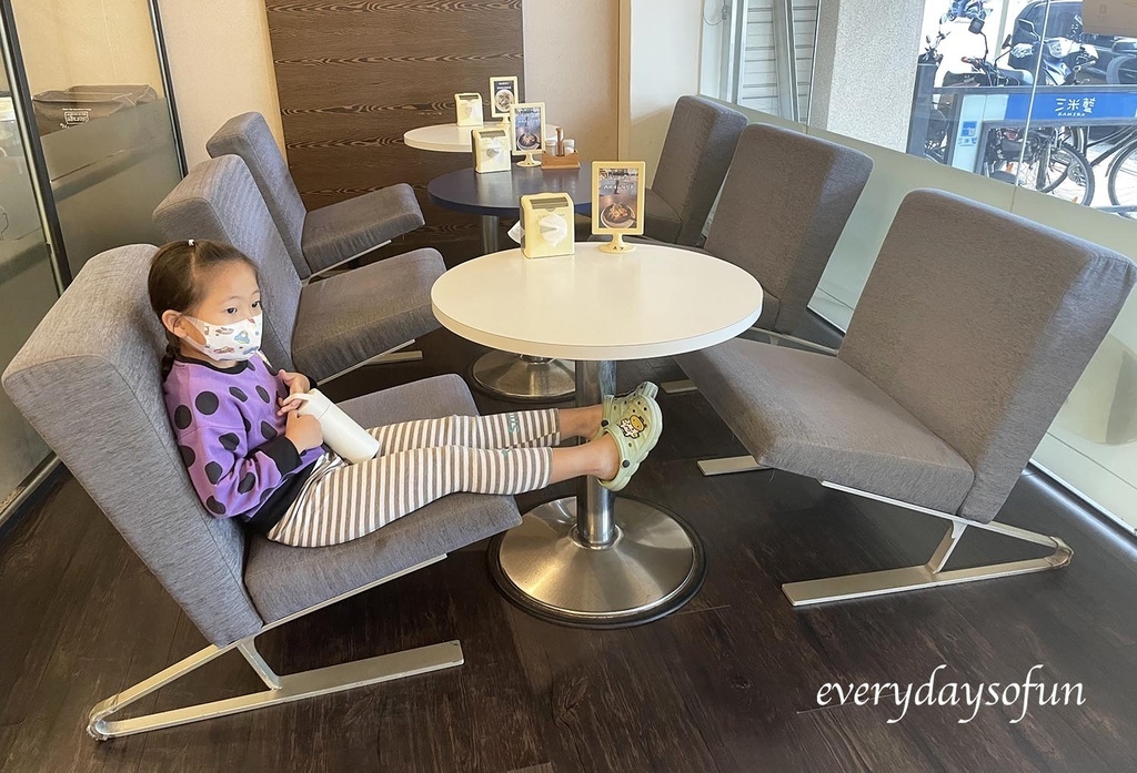 店內空間還算挺寬敞的,乾淨明亮,是個滿舒適的用餐環境,進門後左手邊是結帳櫃台與蛋糕、飲料吧台,服務人員感覺像是大學生打工,都很年輕,很重要的一點,每一位都很親切卻不油條,我非常喜歡這次用餐的感覺。