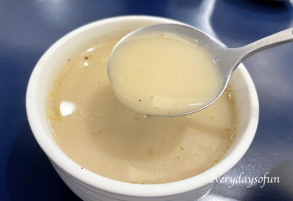 滿特別的馬鈴薯濃湯,我本身還滿喜歡吃馬鈴薯的,但化成濃湯後的模樣,沒有打中我的胃~香氣是挺濃郁的,口感也濃稠適中,單純是我沒有很喜歡這種味道,不過Zia爸爸倒是喝得很開心。