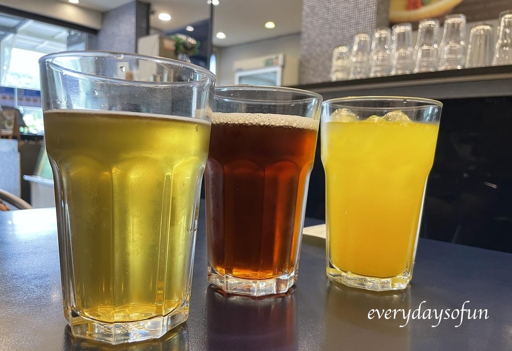 飲料的味道就是想像中那樣,不難喝,但也沒啥好驚豔的,我覺得我們附了三杯有點多,雖說主餐份量都不是太多,但吃下來倒也是喝不下,還好我們有爸爸XD