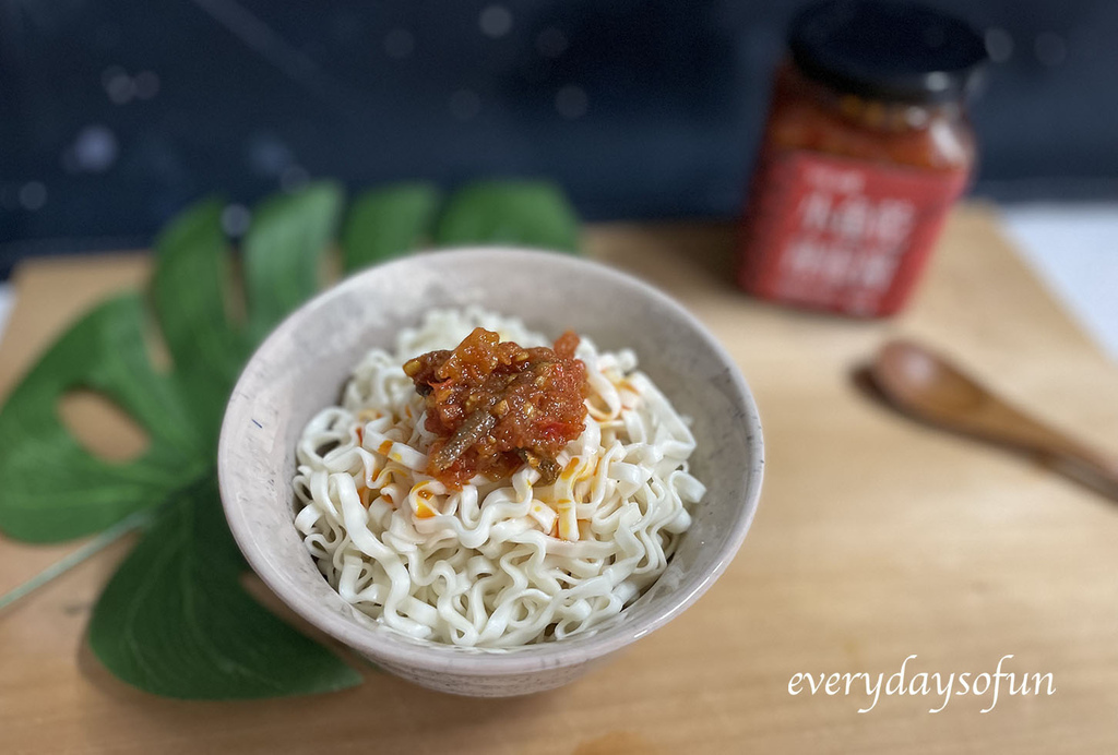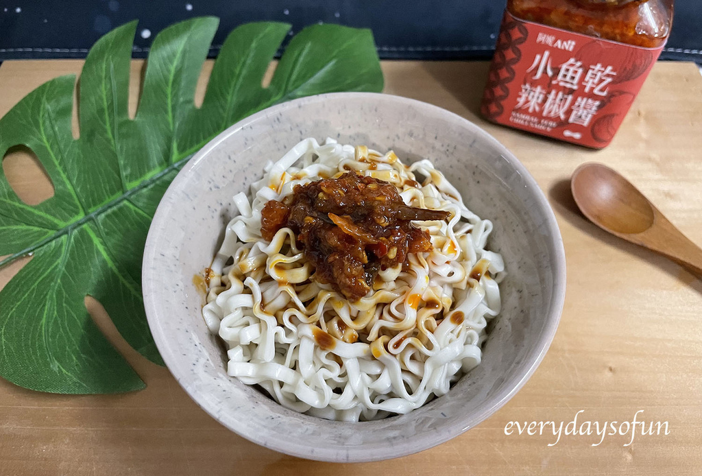 小魚乾辣椒醬我覺得很適合拌飯麵,讓整體味道層次更明顯,吃起來爽辣鮮美,簡直就是我的拌麵小偷,邊吃邊流汗,還是一口接一口得停不下來,這種畫面應該是許多嗜辣魔人常見的吧。