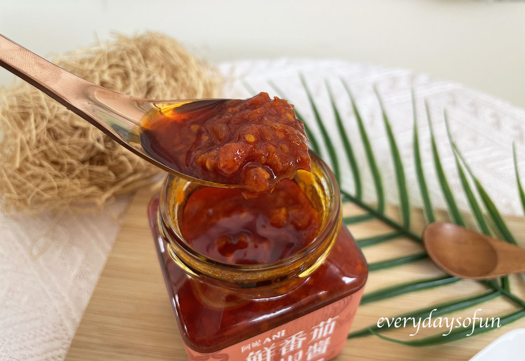 每一款阿妮辣椒醬都是使用台灣自產的朝天椒,辣度明顯還自帶辣椒香氣,使用鮮蕃茄製作的辣椒醬,我可是第一次品嚐,每一瓶濃縮3顆以上的牛蕃茄精華,用料十足,吃起來夠辣之外,鹹中帶點微微的蕃茄甜,會讓人眼睛為之一亮。