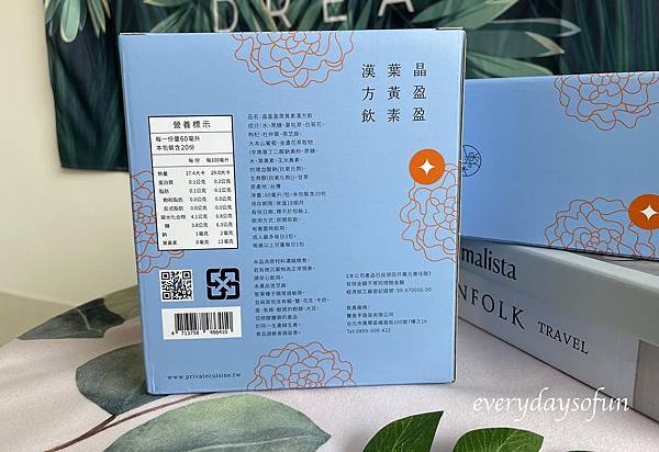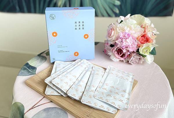 藍色外盒看了覺得好舒服,一盒有20包,每包60ml,最特別的,這是常溫漢方飲,經過高壓殺菌,可以將營養美味都封鎖住,不需要冷藏或冷凍,就可以保存540天,隨開即喝的便利性,對於每天時間不夠用的我來說,真是一大福音。