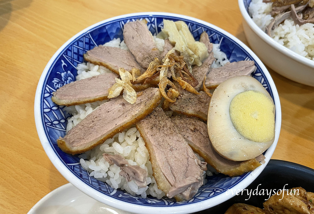 哇~看起來真的很不賴對吧,鴨肉片擺盤精美,灑上一些油蔥及胡椒,均勻拌一拌後,鴨油醬香漸漸飄揚出來,這碗份量不算太多,鴨肉帶點煙燻香味,肉質不會乾柴,我覺得還滿優秀的喔!