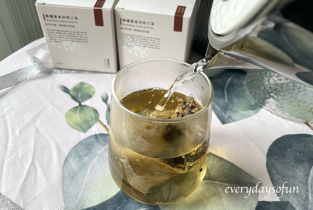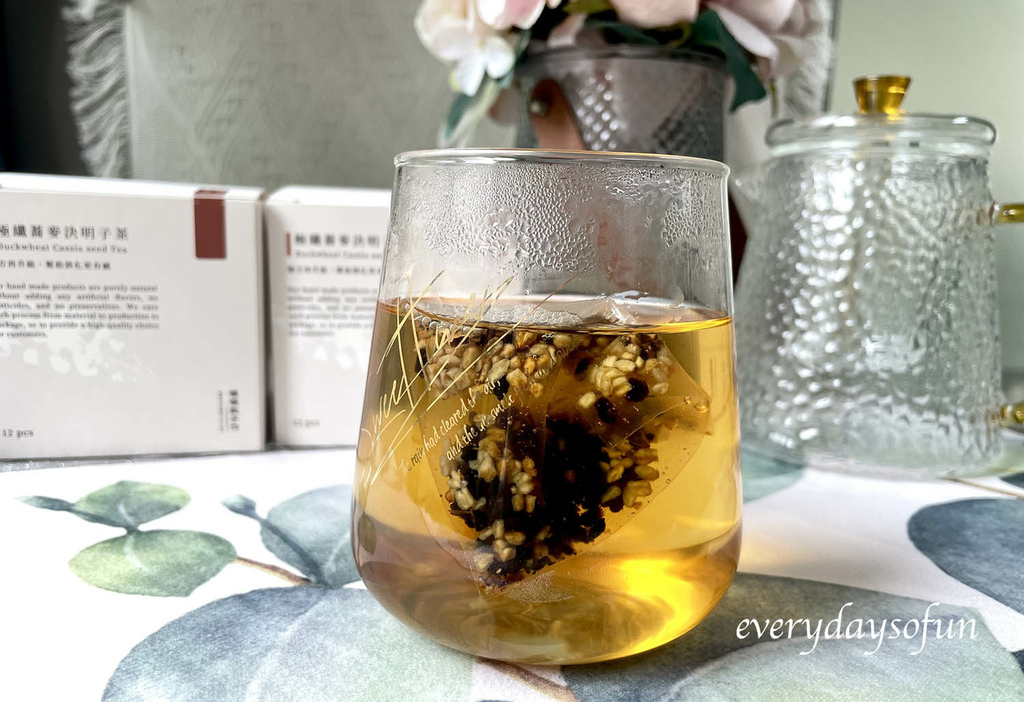 決明子茶包真的很方便,無論是愛喝熱茶或是冷泡都可以,大約350左右的水量,濃淡可以視自己的口味調整,熱水沖泡大約3-5分鐘即可,因為我比較愛喝濃一些的,所以我會放更久一些,環境中瀰漫著蕎麥烘焙的香氣,感覺溫暖又幸福。