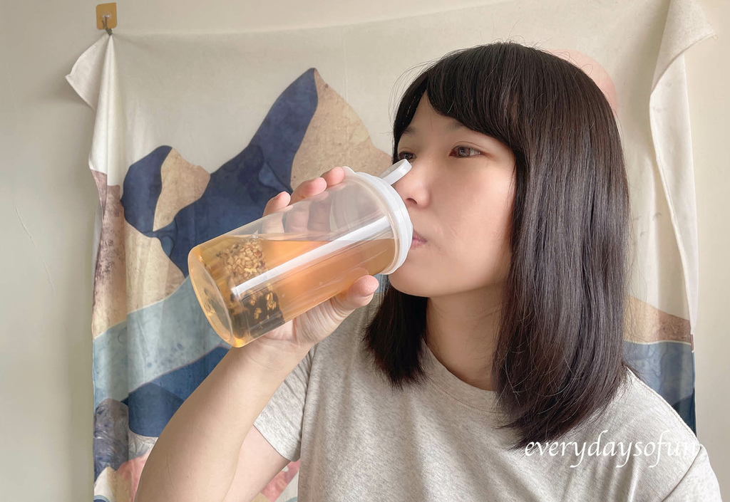 若是隔天要外出,我會提前用水瓶冷水沖泡,大約6-8小時就很夠味了,當然也可以放再久一些,外面天氣那麼熱,喝口決明子茶能解渴消暑,也比手搖飲來得健康養生多啦!