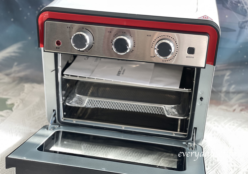 前面有提到過,AF66的功能實用且操作簡便,插上電源後即可以啟動,只要旋鈕至需要的位置及開始運作,運作後也可以開啟右邊的爐燈,方便觀察食材的狀況。