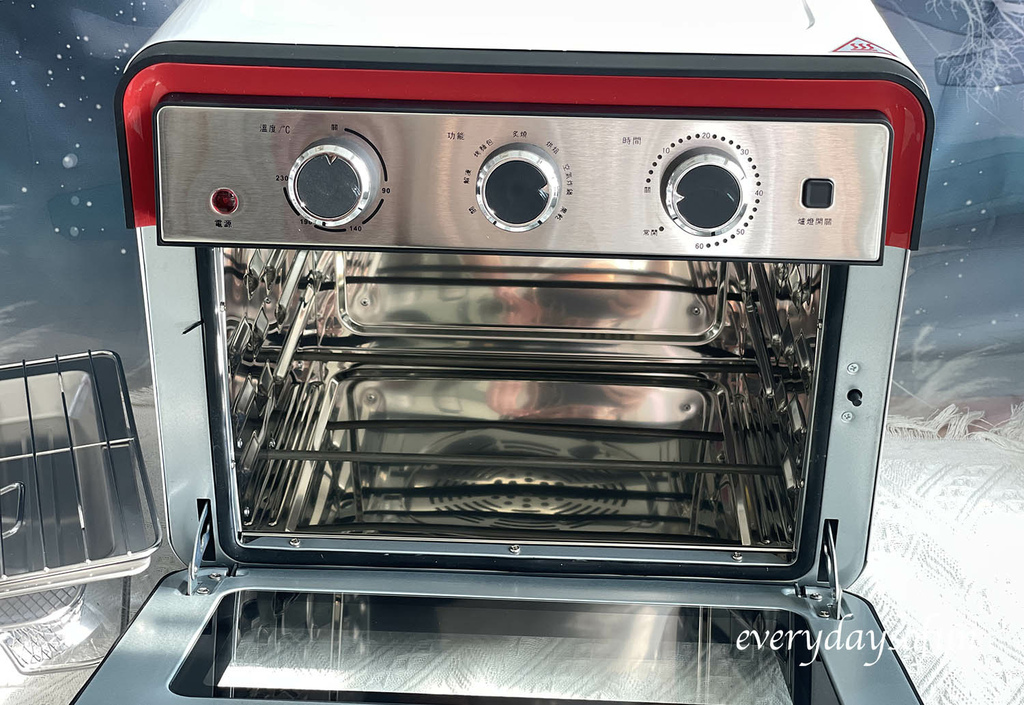 機身全金屬設計、過熱自動斷電、防燙把手、雙層隔熱玻璃,在高溫使用下也安全滿分,產品也通過台灣BSMI認證以及國際AE、GS、CB認證,小時候曾因為被烤箱燙到,而產生的陰影到現在還記得,所以科技進步,相對也讓生活品質更有保障。
