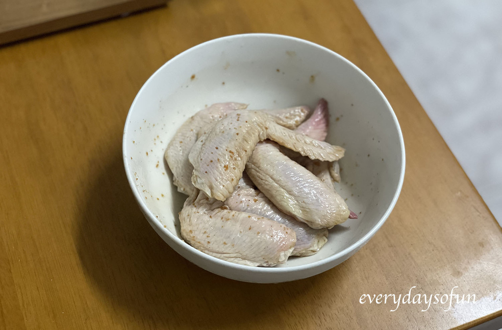 ✔準備材料:雞翅、烤肉醬、米酒、水