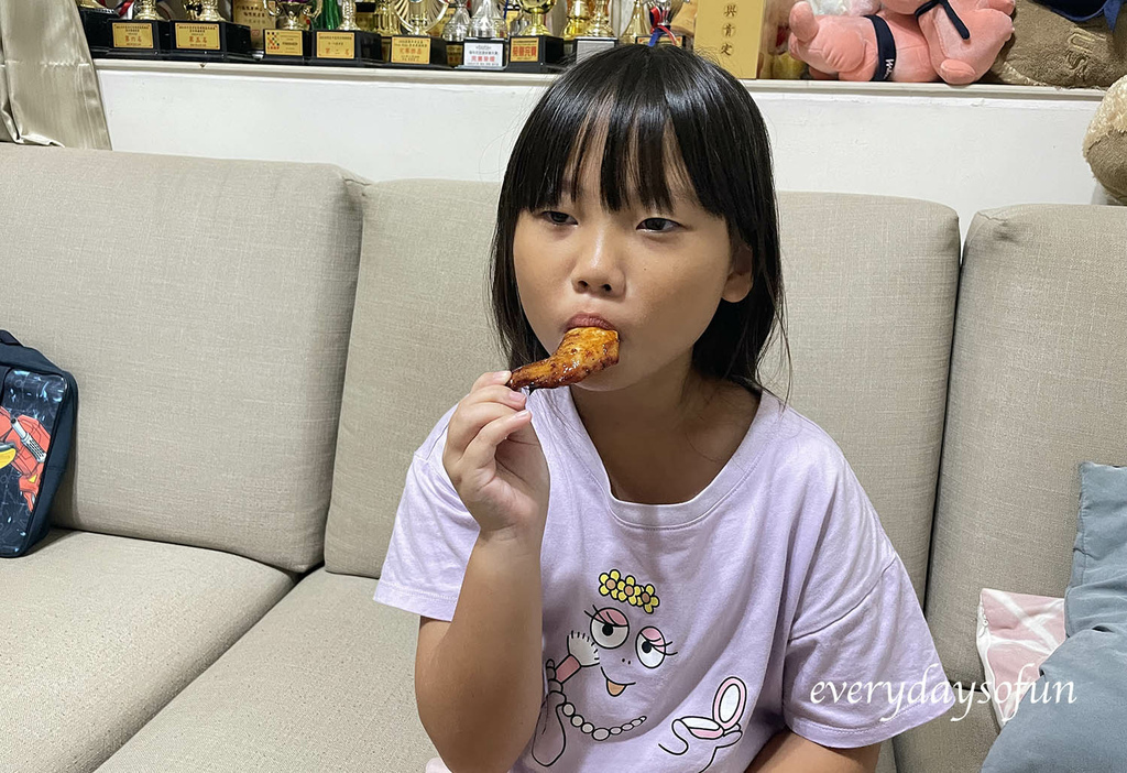 哇,這看起來跟外面買的沒差別對吧,金黃色澤看著就讓人流口水,小孩也超買單的,一次就吃三隻還問能不能再吃,對於喜歡料理的人來說,被清盤就是最大的滿足了。
