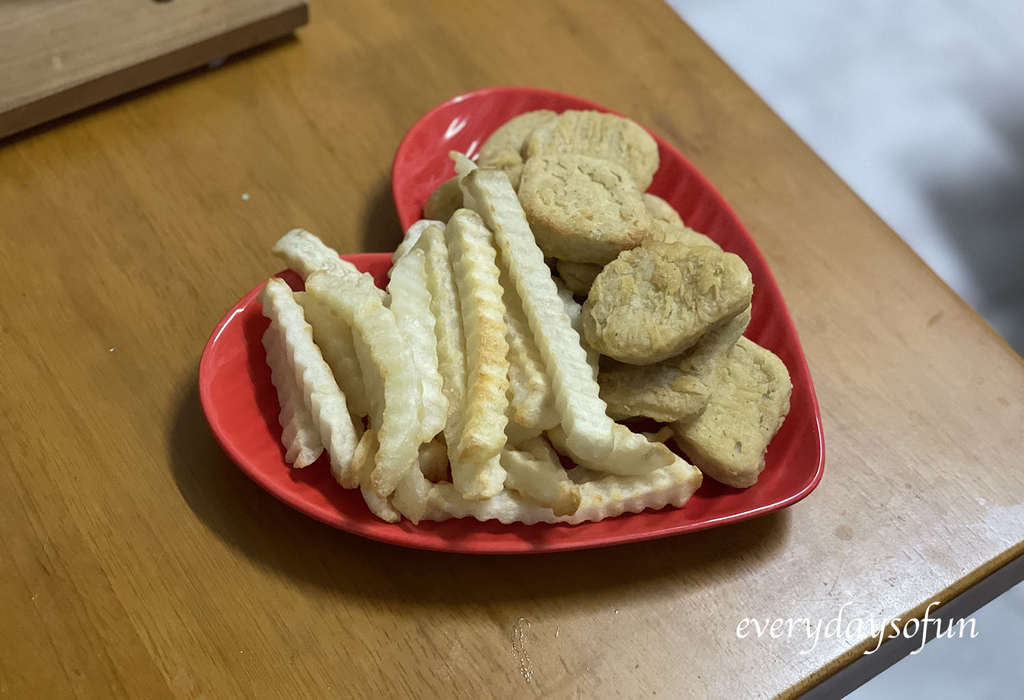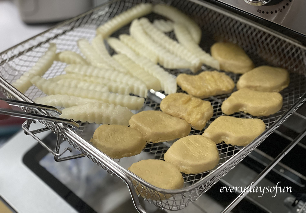 這是氣炸烤箱一定要做的一件事,將喜歡的炸物放入即可,可以噴微量的油,表面會比較酥脆一些,超簡單又超受歡迎,當小朋友邀請同學來家裡玩的時候,端出這一盤就能聽到滿屋子的歡笑聲。