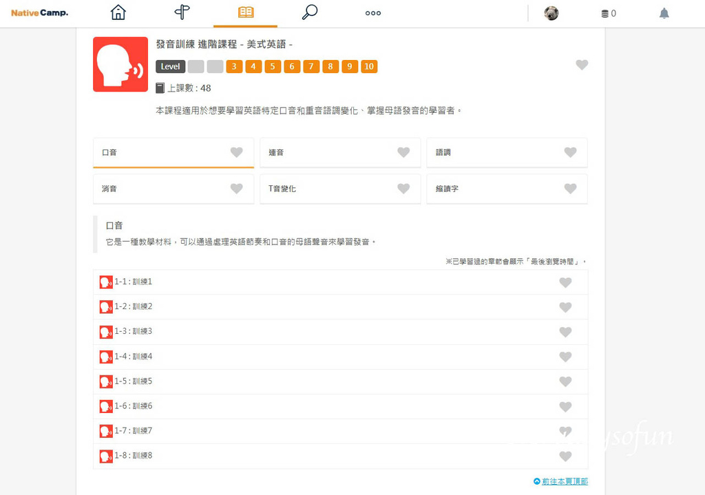 不走傳統制式化的學習模式,在Native Camp.的課程素材中,可以任意挑選自己有興趣的內容來學習,從初學者到多益檢定、兒童專用、文法、商用會話、旅遊等,Native Camp.有超過2萬種以上的教材適合各種程度學習,平台還提供免費的教材診斷,讓每一位學員都能挑選最適合並滿意的教材。