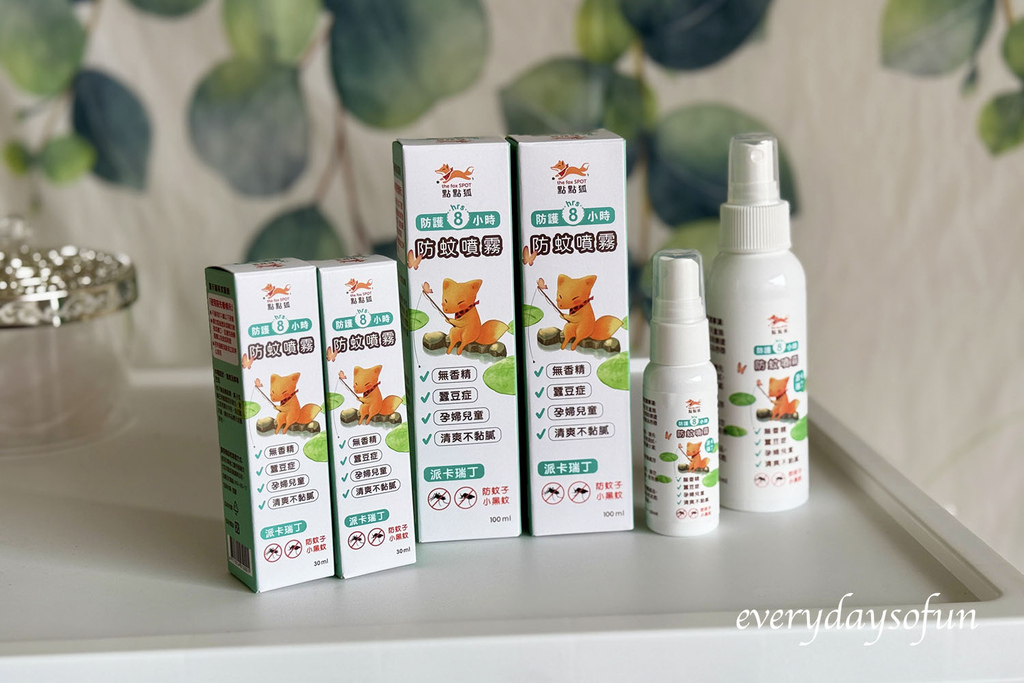 前面有提到點點狐長效防蚊液是孕婦及幼兒都能使用的,成份單純不含薄荷、樟腦,就連蠶豆症也沒問題, 兒科醫師推薦的派卡瑞丁配方相當溫和,能有效阻斷蚊子感應我們散發出的氣味,親子旅遊必備,我終於不用再當蚊子吃到飽的大餐了。