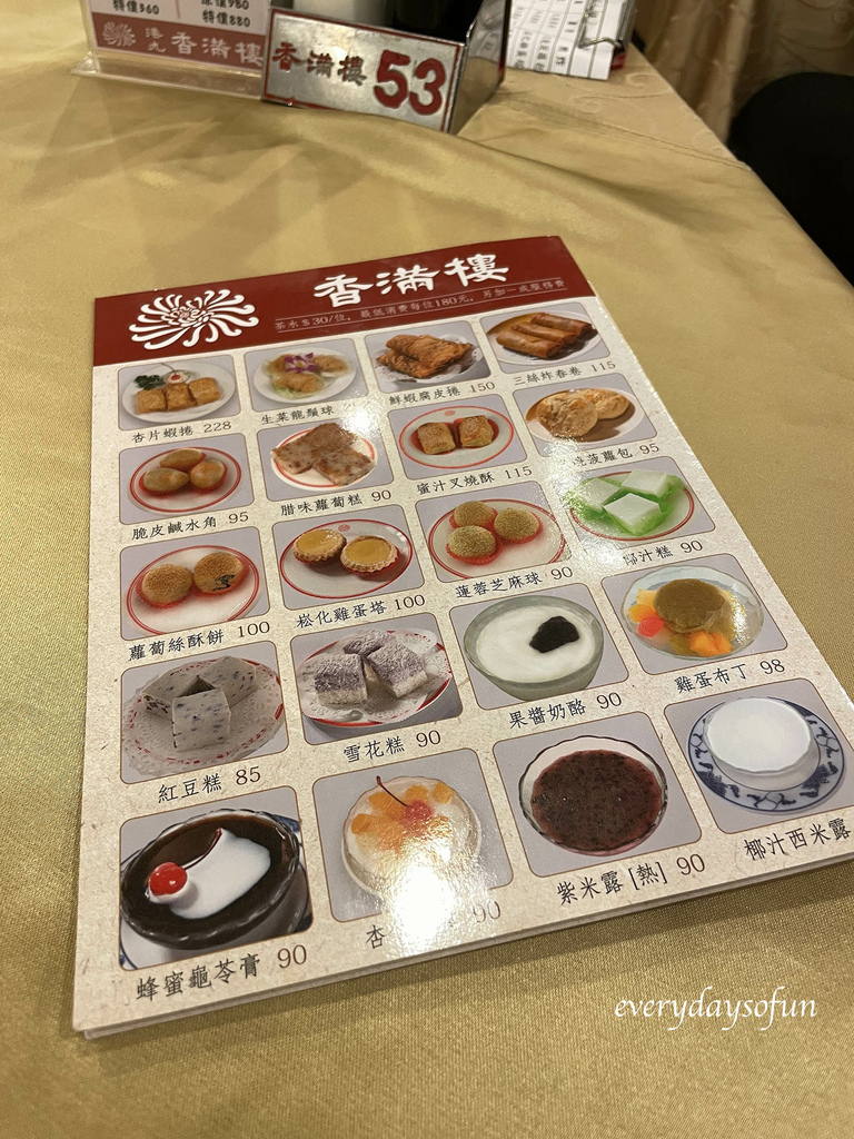 香滿樓的低消每位是$180,茶水則是以人頭計算,每人$30,另外再加一成服務費,港飲的價位其實低消很容易達到的,不用太擔心。