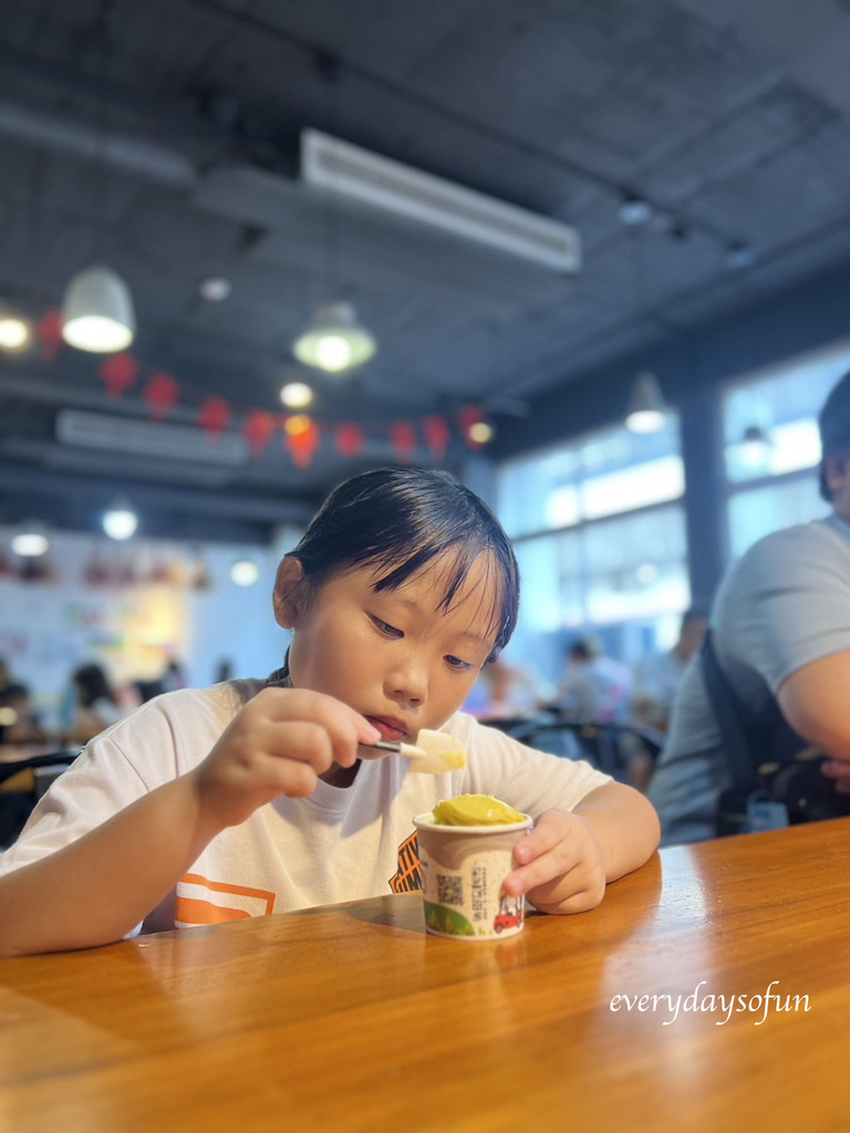 這裡有獨家水泥冰,灰色的很吸睛,但這顏色小孩不買單,所以沒機會拍到好可惜呀!要特別注意的是,咖啡廳與雞蛋糕平日都沒有供應。