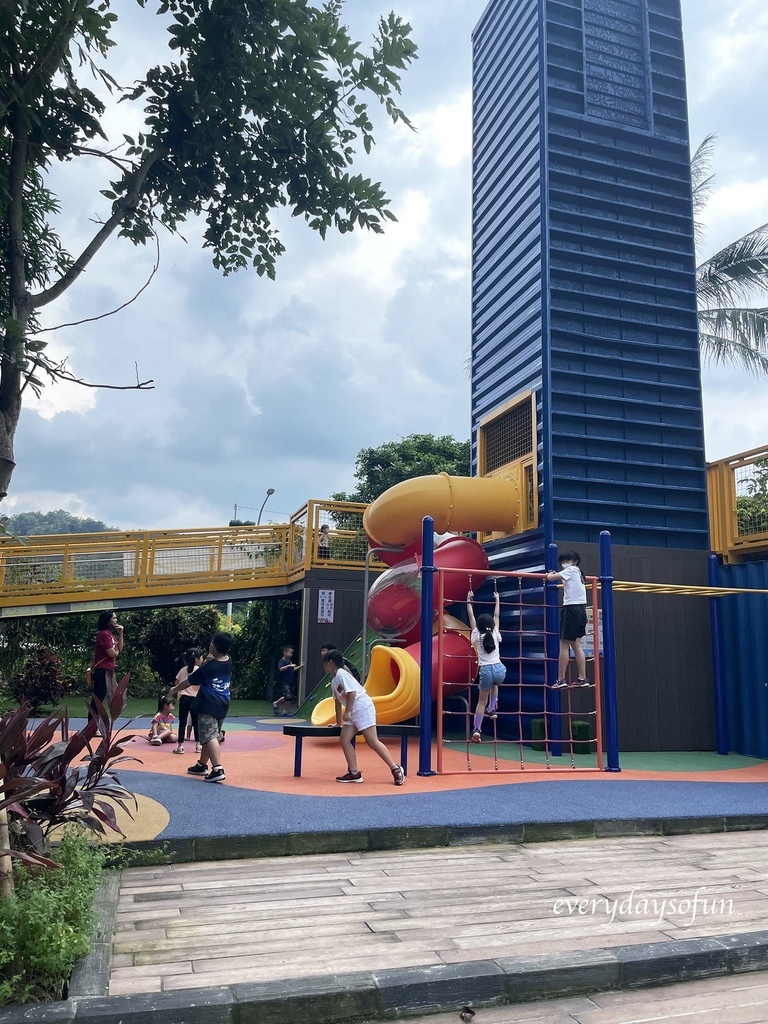當天有點小飄雨,所以只有讓小孩玩一次,就是一座溜滑梯,小孩都不能抗拒它。