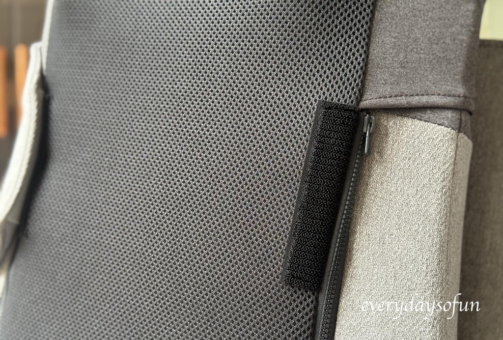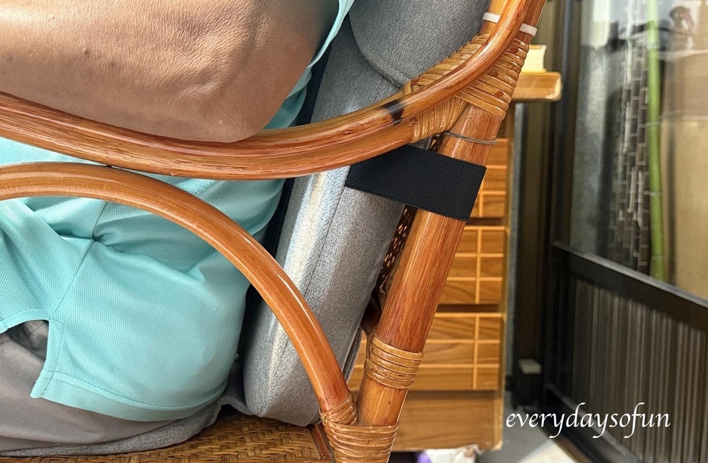 椅墊的背後有條魔鬼氈,當你在電腦椅、餐椅、藤椅上變換使用時,只需要將魔鬼氈拉至椅後相黏即可固定,如果要平躺,或是像在床上或沙發上使用,相對安全性很高,就可以不用黏小翅膀喔。