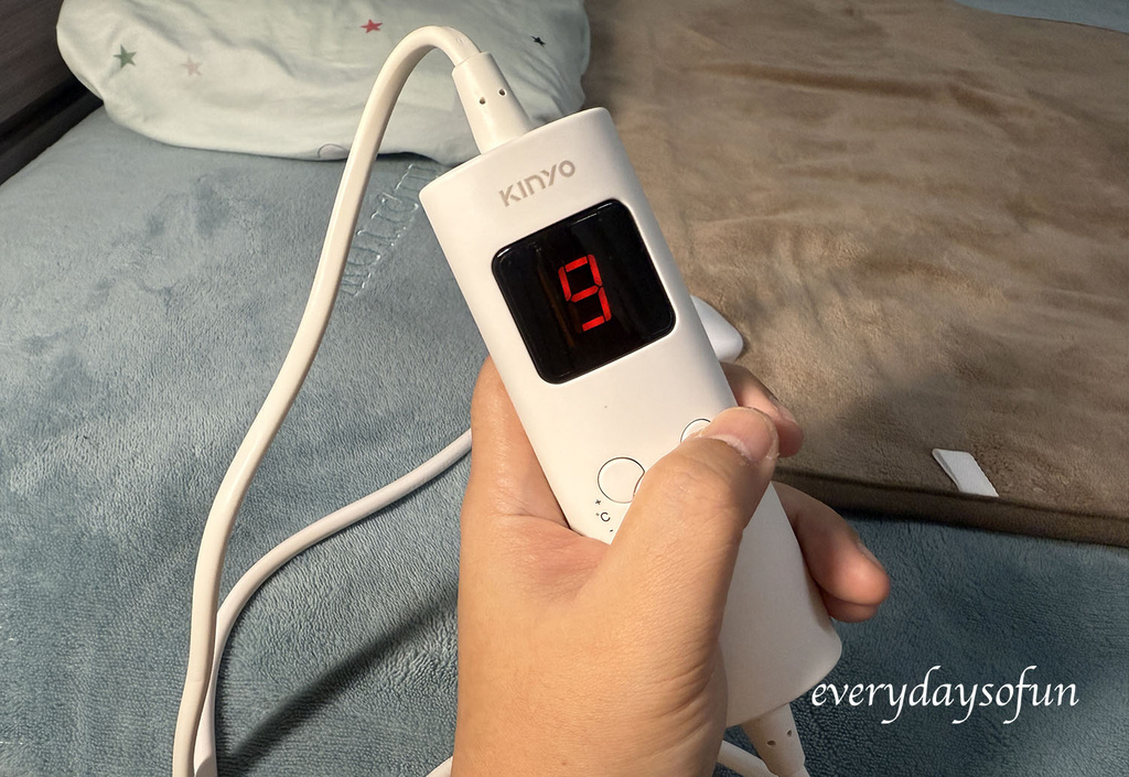 可自由設定1-9小時關機,午睡可設定1小時,夜晚就寢則設4-6小時,若是長輩可設定長一點的時間,除了保暖還能促進循環,在面板上都能直接看到設定的數字。